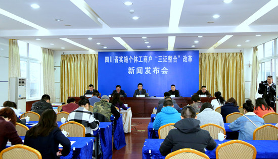 11月28日,省人社厅、国税局、地税局、工商局联合召开四川省实施个体工商户“三证整合”改革新闻发布会。省工商局副局长沈健作新闻发布,省税务局总经济师郭辉、省人社厅参保权益处处长晏巍、省国税局征管和科技发展处副处长彭新宇、省工商局个私处处长王北回答了记者提问...